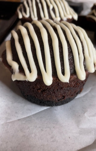 Mini El Choco Loco Cakes, with melted chocolate morsels in the middle, on a Oreo cookie crust topped with our signature sweet icing