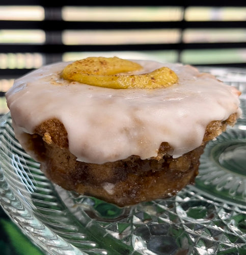 Mini Cinnamon Apple Cakes, loaded with fresh green apples, topped with our signature sweet icing & fresh green apples